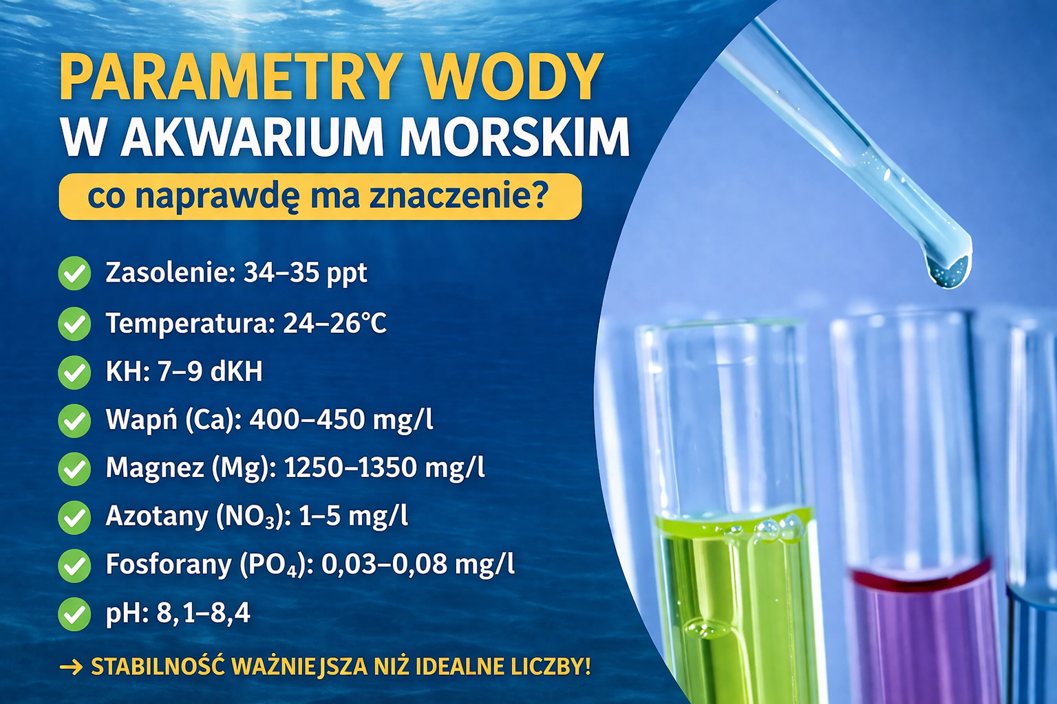 Na początku wszystko wydaje się skomplikowane. Sól, zasolenie, KH, wapń, magnez, pH… lista parametrów potrafi przytłoczyć każdego, kto zaczyna przygodę z akwarystyką morską. I bardzo często to właśnie ten temat odstrasza najwięcej osób. Ale prawda jest taka, że parametry wody w akwarium morskim nie są trudne. Trzeba tylko zrozumieć jedną kluczową rzecz: nie chodzi o idealne liczby, tylko o stabilność. Bo to nie „złe parametry” najczęściej zabijają akwarium. Tylko ich wahania.