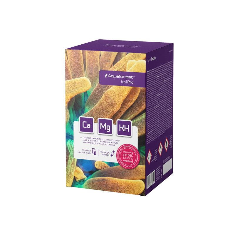 AQUAFOREST Test Pro Pack (Ca, KH, Mg) to zestaw profesjonalnych testów akwarystycznych umożliwiających dokładny pomiar trzech kluczowych parametrów wody w akwarium rafowym: wapnia (Ca), twardości węglanowej (KH) oraz magnezu (Mg).