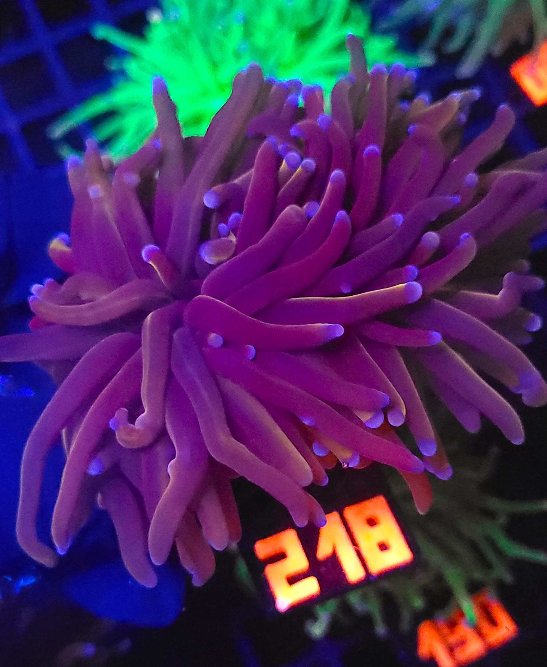 - Wygląd: Euphyllia glabrescens charakteryzuje się długimi, rurkowatymi polipami. Kolory mogą być różnorodne, obejmując odcienie różu, fioletu, zielonego i brązu. Polipy koralowca w nocy otwierają się szeroko, co dodaje im atrakcyjny wygląd.