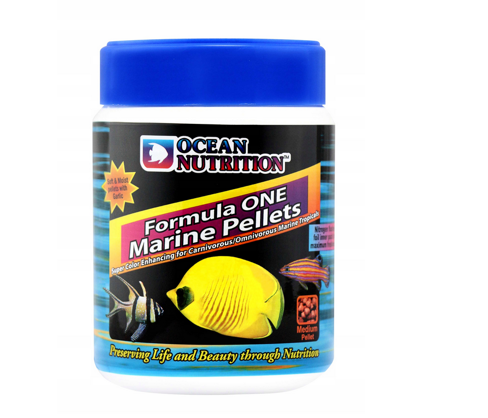 Ocean Nutrition Formula One Pellet 100g M to wysokiej jakości pokarm w postaci małych granulek, stworzony z myślą o wszystkożernych rybach morskich, w tym centropygach i innych ubarwionych gatunkach. Połączenie składników morskiego pochodzenia z dodatkiem roślin sprawia, że jest to kompletna i wyjątkowo odżywcza formuła, wspierająca zdrowie, energię oraz intensywne wybarwienie ryb.