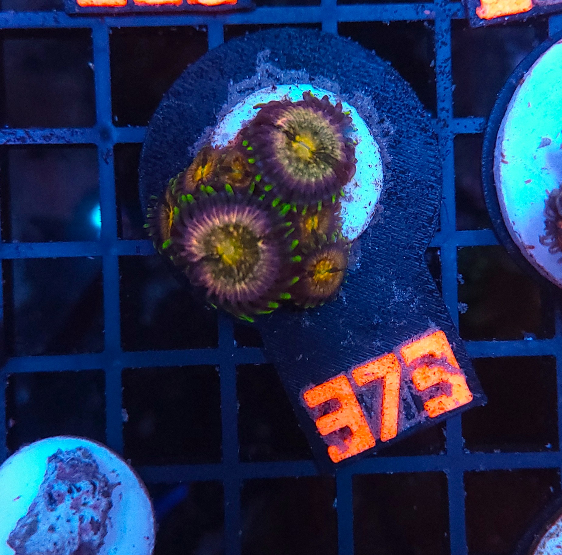 Zoanthus „Nirvana” to jedna z najbardziej efektownych i barwnych odmian korali z rodzaju Zoanthus, ceniona przez akwarystów za intensywne kontrasty kolorów i wyjątkową luminescencję pod oświetleniem actinicznym. Polipy tej odmiany wyróżniają się intensywnym połączeniem barw — w centrum często dominuje głęboki fiolet lub purpura, otoczony jaskrawozielonym pierścieniem i pomarańczowo-żółtymi akcentami na krawędziach. Efekt świetlny, jaki tworzy Zoanthus „Nirvana”, przypomina pulsujące, fluorescencyjne ognisko barw, które przyciąga wzrok w każdym akwarium rafowym.